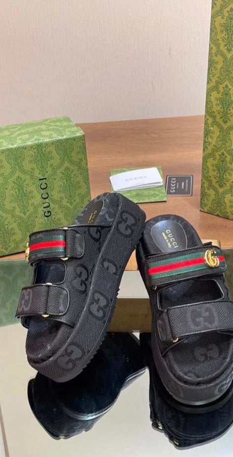 Step into elevated comfort and timeless fashion with these Gucci GG Canvas Slide Sandals. Designed with Gucci’s signature monogram canvas and dual adjustable velcro straps, these slides blend casual ease with designer elegance. One strap features the iconic Web detailing and is finished with gleaming GG logo hardware for a bold, fashion-forward statement.